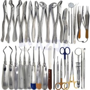 Professional 86-piece dental oral surgery instrument kit designed for tooth extraction, oral surgery, and clinical dental procedures. Manufactured from German-grade stainless steel, this complete set includes extraction forceps, elevators, mirrors, scalers, scissors, and auxiliary surgical tools for reliable performance in dental clinics, hospitals, and teaching institutions.